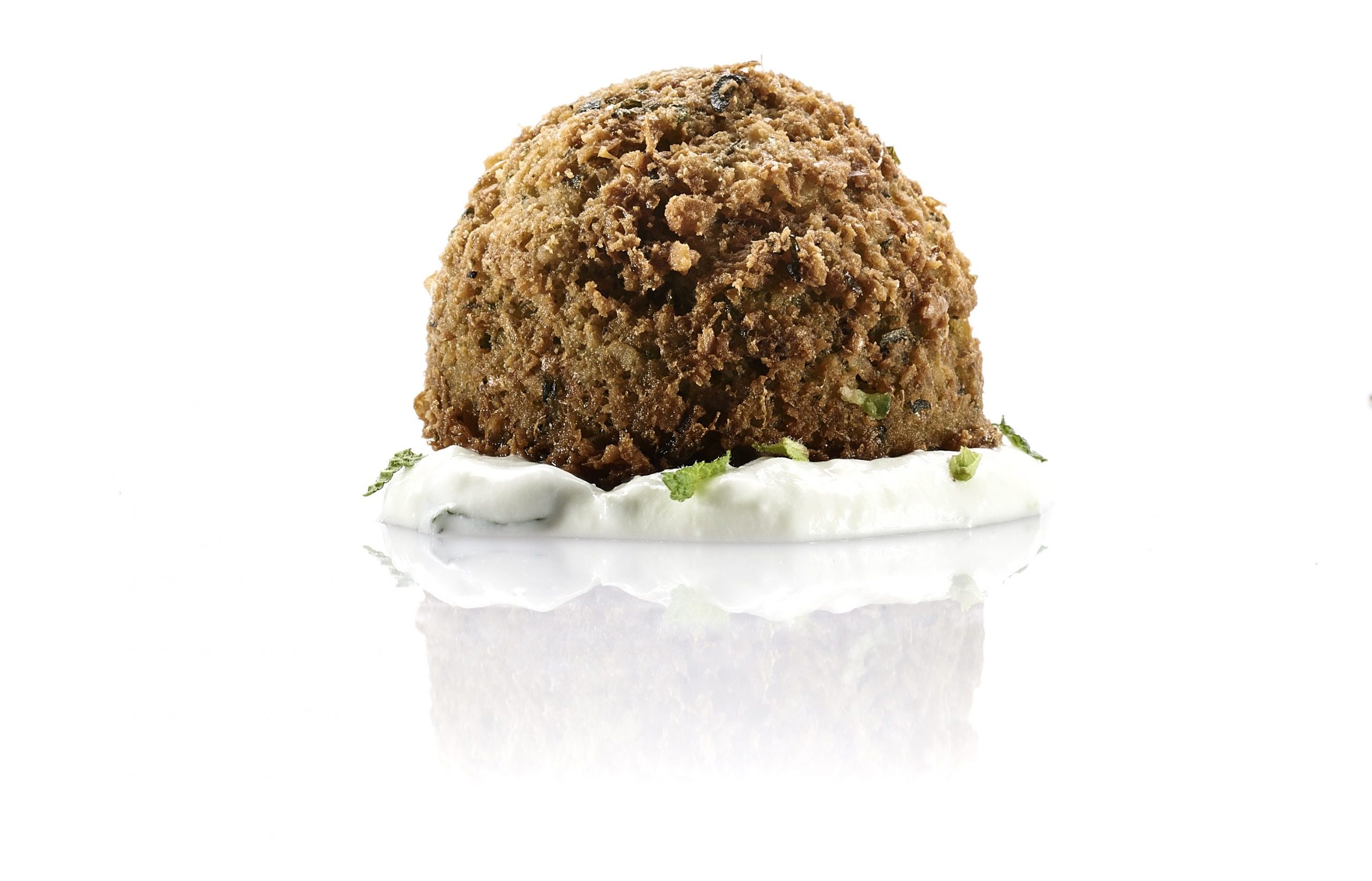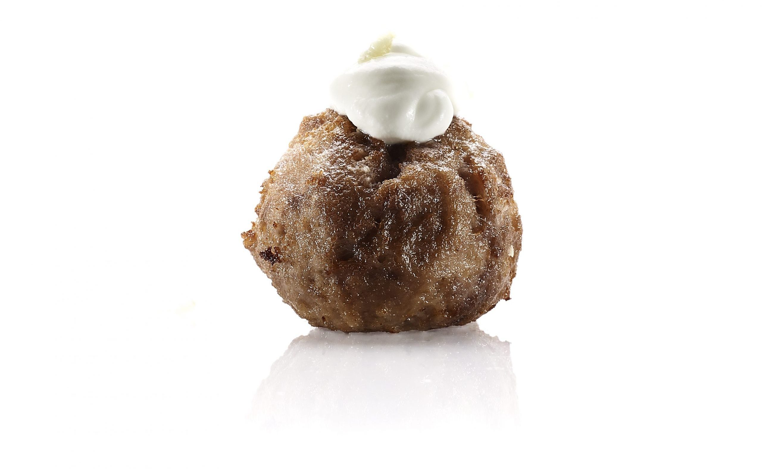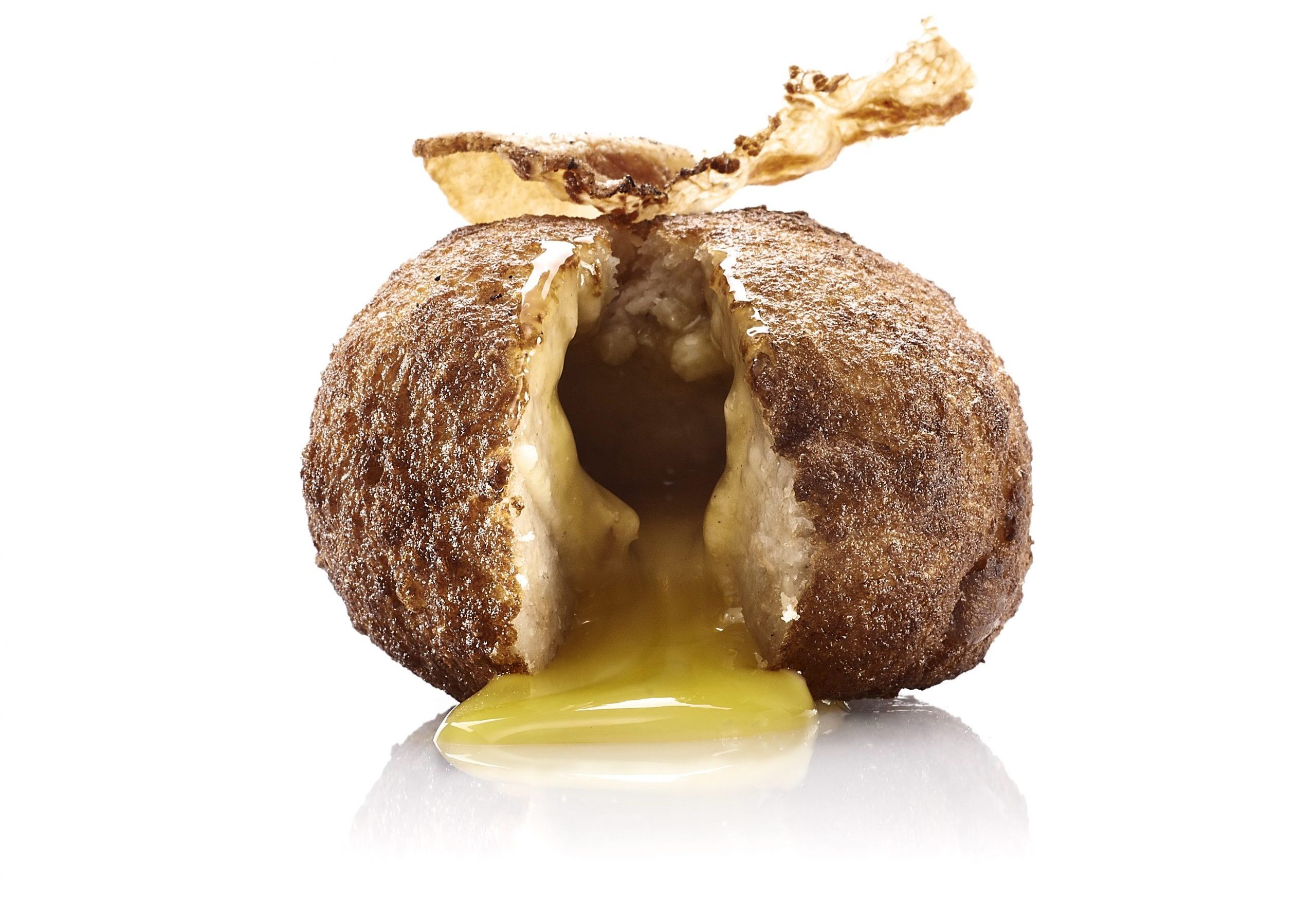Polpetta con Cuore di Tuorlo Morbido, Guanciale Croccante e Pecorino Romano D.O.P.